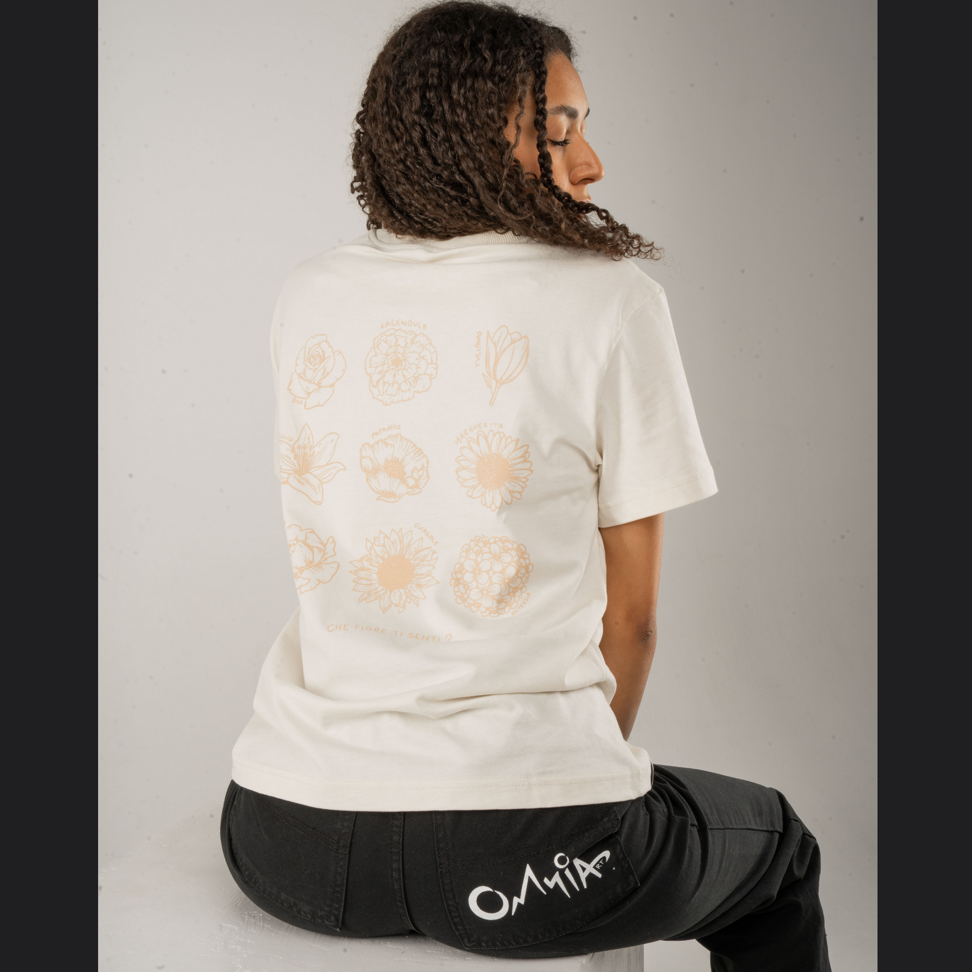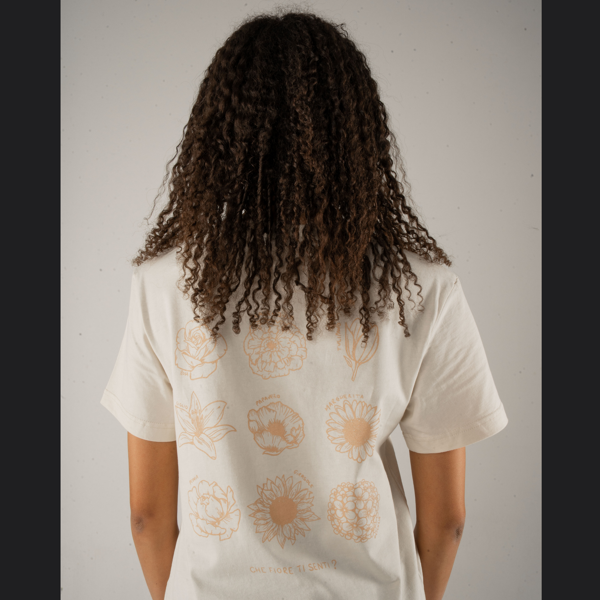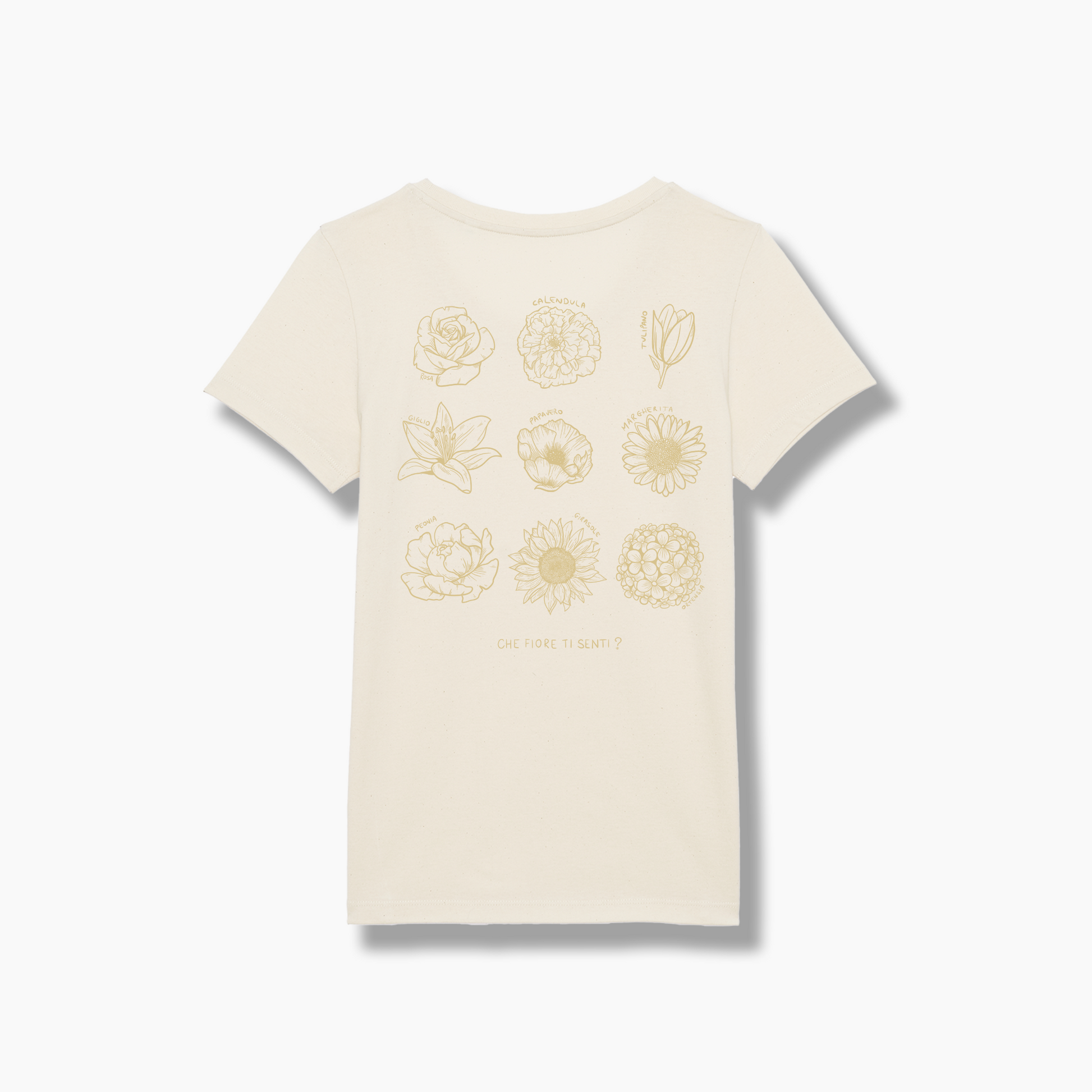 Scegli il tuo umore ogni giorno e giustificalo con un fiore, con la nostra maglia da donna in colarazione neutra.