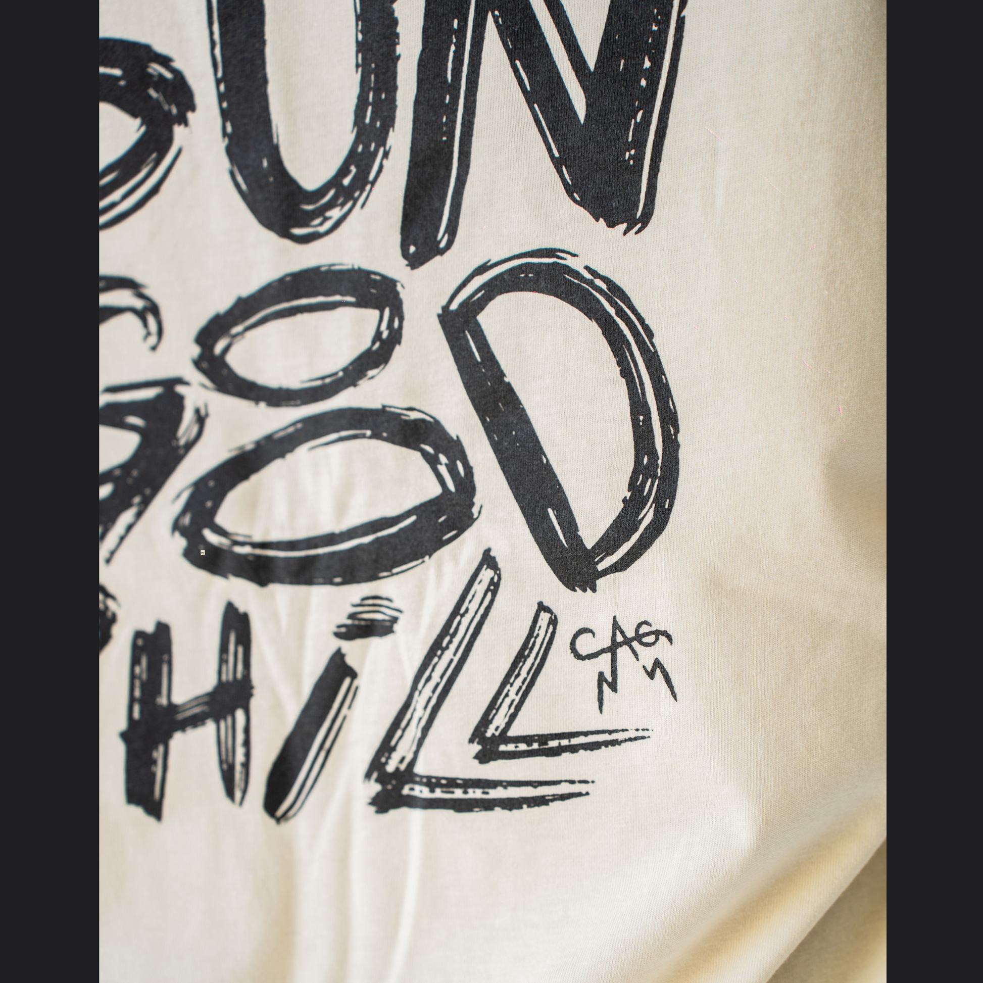 La grafica viene realizzata a mano libera in modo da essere traferita poi sui prodotti tramite stampa serigrafica