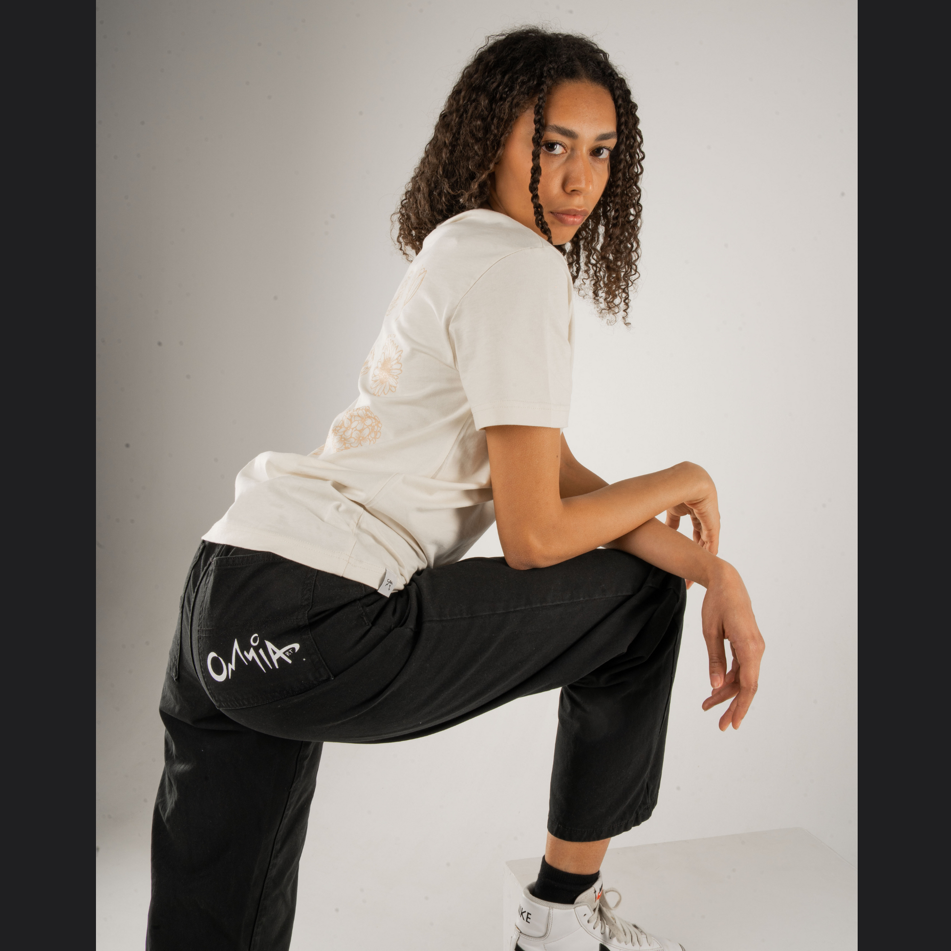 Pantaloni con vestibilità over e ricamo tono su tono. Pronti per essere indossati con tutte le scarpe e felpe che desideri!