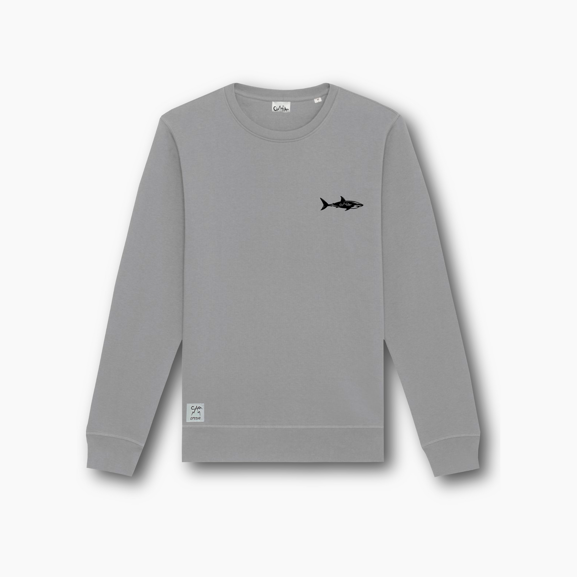 Felpa girocollo in cotone organico con squalo minimale, pronta per tutti i tuoi outfit.